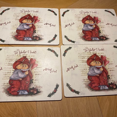 Klarborg dækkeservietter, Klarborg jule dækkeservietter 4 stk med nisser og juletræer.
