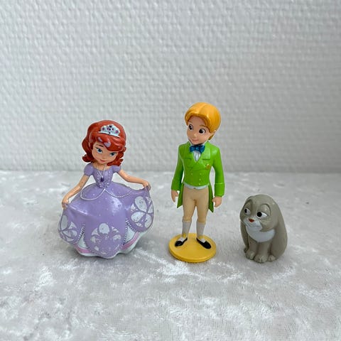 Andet legetøj, Prinsesse Sofia med venner + smykker , Disney, Prinsesse Sofia dukke + Kravle + Kløver + Mia. Desuden halskæde og ring med prinsesse Sofia. I rigtig fin stand. Der er dog noget rødt som er smittet af fra andet legetøj på Sofias sko og på Kløver (se billede).