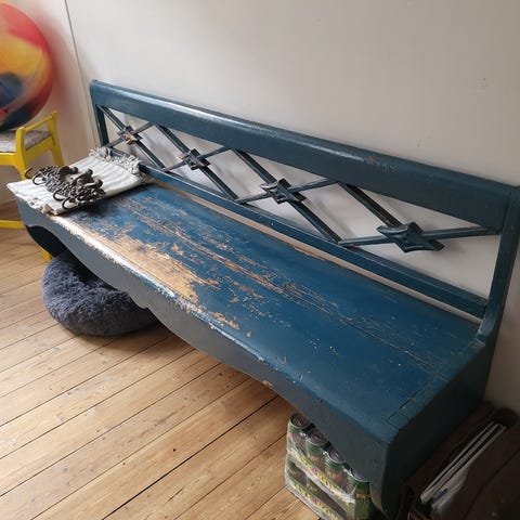 Bænk, Ukendt, Antik restaureret vaskebænk med grønt stel.