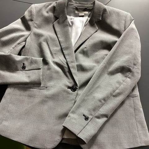 Blazer, str. 36, H&M, Sort, brun og beige, Næsten som ny, Flot figursyet blazer i klassisk business look.