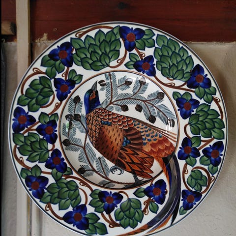 Fajance, Smukt Aluminia vægfad med oranginer og julerose