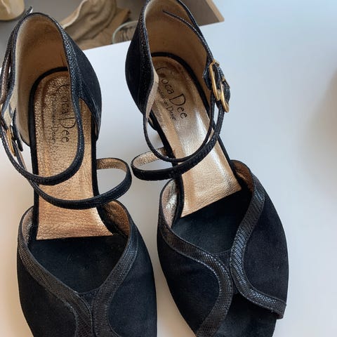 Smukke dansesko i hvid leopard print. Str 36, brugt to gange, men er lidt for små til mig. Fortjener at komme ud og danse og blive beundret.