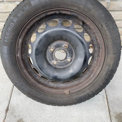 Stålfælge, 15", krydsmål 4, fælge med dæk, Den er helt ny