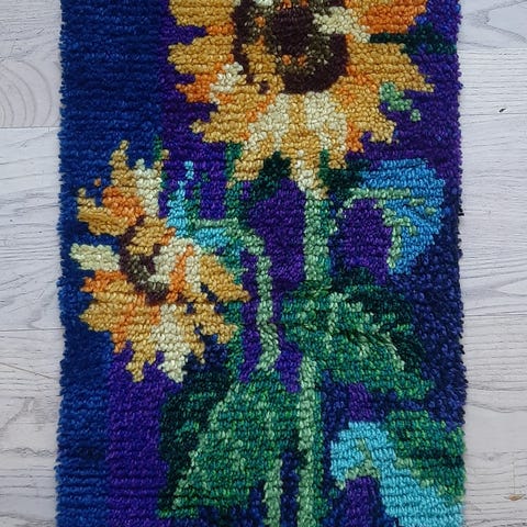 Vægtæppe, Retro vintage Ældre gammelt, Super flot rya tæppe til at dekorer væggen med, flotte farver og i Retro / Vintage