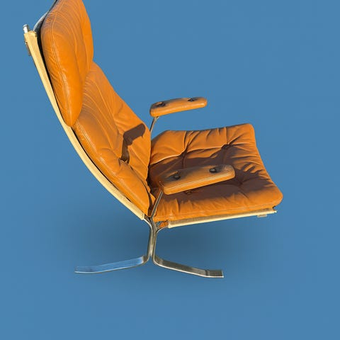 “Euro 1600” lænestol med stel af forkromet stål og nypolstret med rødt læder. Udført hos Girsberger. Fremstår med alders- og brugsslitage på stel. Hans Eichenberger (f. 1926). Kun afhentning!