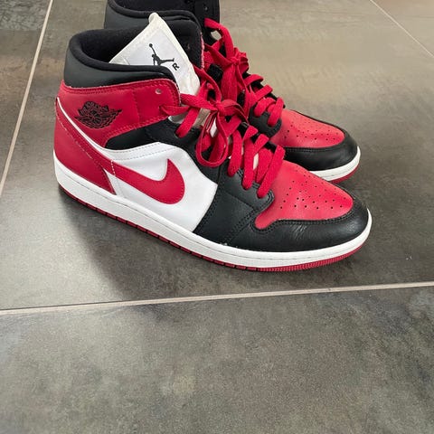 Støvler, Nike Air Jordan 1 , str. 42, sort , God men brugt, Lækre Nike Jordan 1 Mid Black Particle Grey Gym Red støvler i str. 42