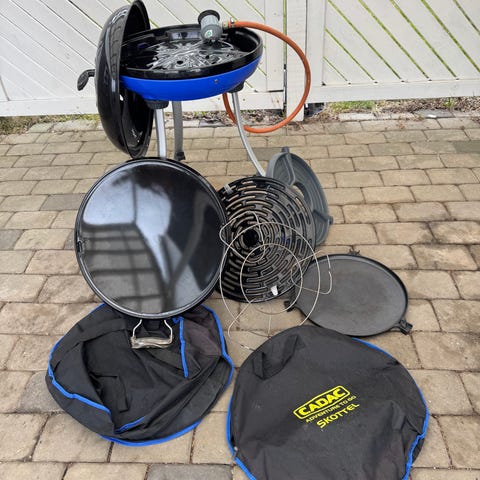 Fed grill, fylder ikke meget og mange funktioner i en løsning. Regulator til gas kan evt tilkøbe.