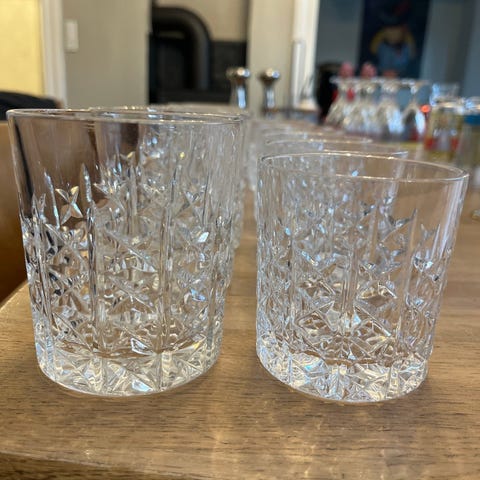 Glas, Drinks glas, Drinks glas med guldkant. 6 stk H 8,4 cm B 7,5 cm