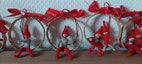 8 stk. ringe med nisser. På hver ring er der snor til ophæng samt en sløjfe med teksten "God jul".