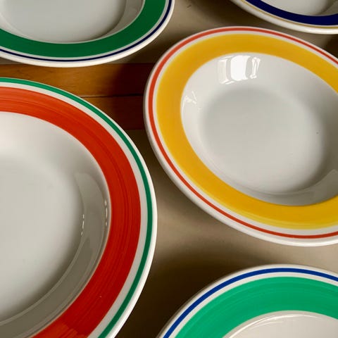 Dybe tallerkner, Porto Ferreira, Smukke porcelæns dybe tallerkner fra Porto Ferraira. Har en top smuk mørkegrøn blomster rand. Made in Brazil. Top stand. Som nye. 6 stk. sælges samlet. 130kr pr. Stk.