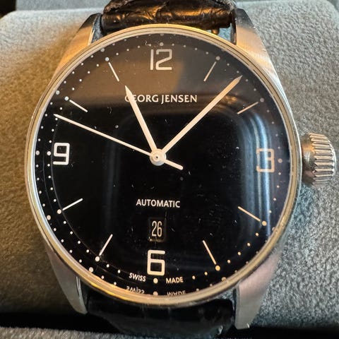 Herreur, Georg Jensen, Super flot og meget velholdt model S42-ST70 med automatisk urværk. Original GJ ur-kasse og hardbox medfølger.