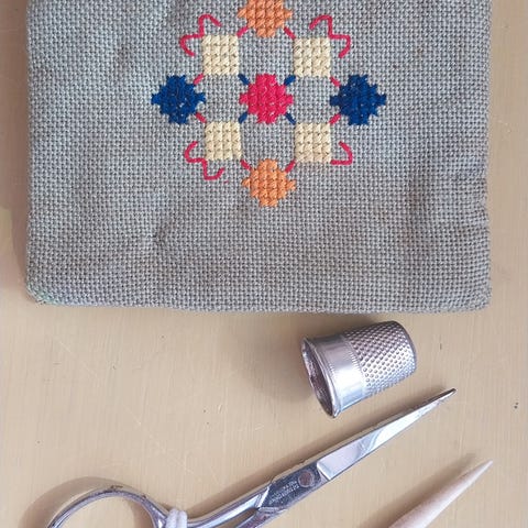 * Stofbeklædt æske, med sysager