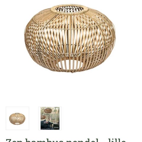 Her en super skøn pendel lavet af sort formbukket bambus med hvidt reb der er flettet ind som afskærmning.