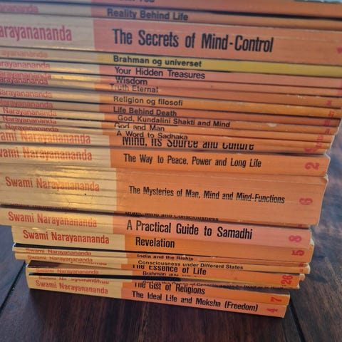 Pæn stand: Indbundet i dekoreret kartonnage + med et vandafvisende omslag - med navn på indvendig foromslag - 54 sider - N. U. Yoga Ashrama 1971.