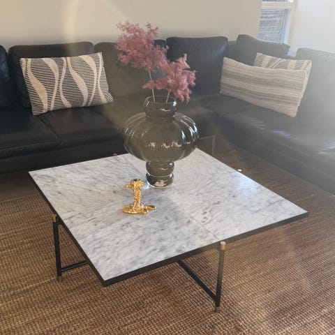 Der er slået en lille flig af marmorpladen i det ene hjørne. Se billede 3.