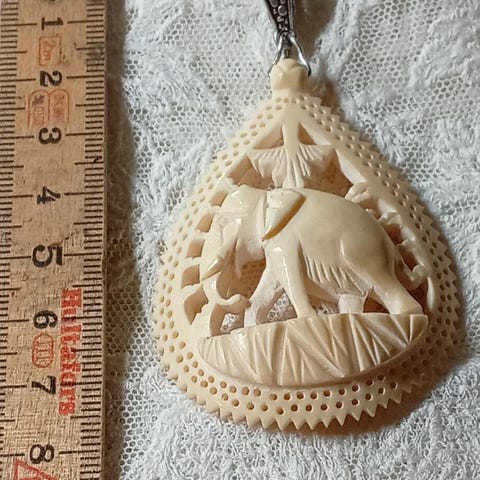 Vedhæng, Elfenben, Elefant / Vintage / Afrika / Asien