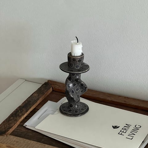 3 lysestager i fedtsten og massivt træ, Fedtsten er natur og derfor er de ikke ens i farven.