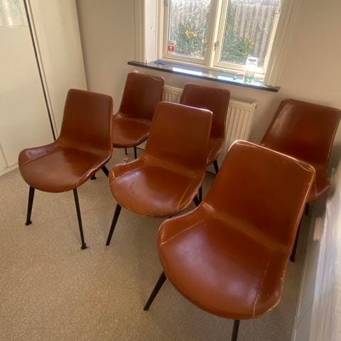stole, ILVA, 6 flotte stole med armlæn. NYPRIS pr stol 1900,- 2 af dem trænger til nyt betræk pris pr stol