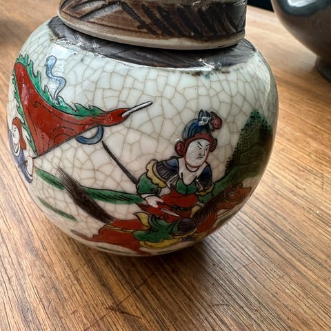 Oprindeligt brugt til syltet ingefær, the eller krydderier etc også proviant på skibe. Ofte ret unik dekoration, få er helt ens. Fin som vase, reolpynt eller bordpynt.