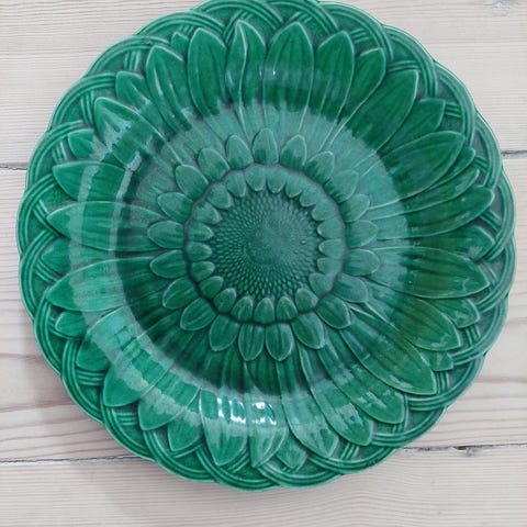 Grøn glaseret senviktoriansk solsikke-tallerken fra engelske Wedgwood.