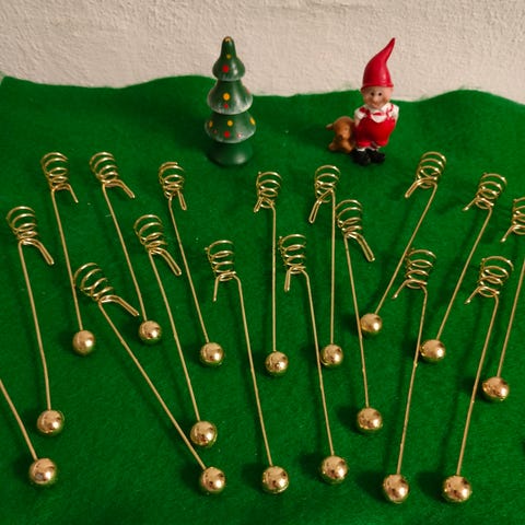 Julepynt - lysholdere, 2 æsker metal grønne balance lysholdere fra Brugsen - æsker og lysholdere i ok stand med lidt forventelige brugsspor.