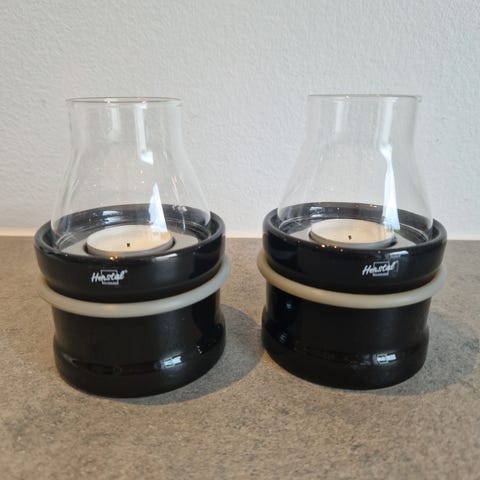 2 messing fyrfadsstage/lysestage, H 5,5, dia 9 cm. Samlet 60 kr