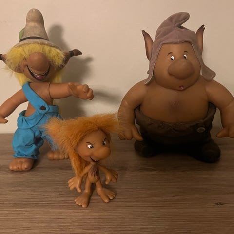 Andre samleobjekter, GIMPE Trold, Gimpe fra serien Trolderi sendt i 26 afsnit på 1999 på DR1. Højde ca23-24 cm. Hale ben og arme kan flyttes . Fin stand.. figuren er fra Troll Factory.. kan sendes med DAO ellerGLS på købers regning