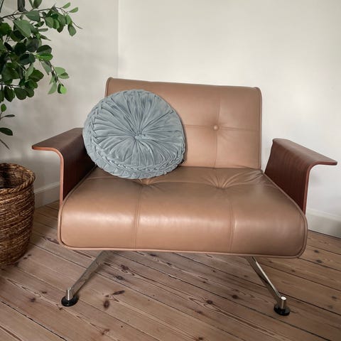 Loungestol, træ, Fin loungestol i egetræ og med læder betrukket sæde ?? dansk design.
