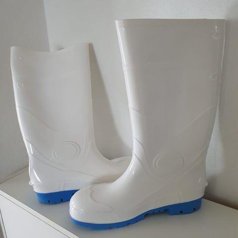 Stærkt nedsat. Sikkerhedsstøvler. Polyver, str. 43, Sort, Som nye, Gummistøvle. Den perfekte forede støvle med robuste skridsikre såler med dyb slidbane og godt greb til glatte og mudrede vejforhold. Støvlen er foret med blød og varm akryl og uld. Kraven er justerbar for at holde de værste stænk ude. Den er vandtæt, har sålindlæg med beskyttelse mod sømgennemtrængning og har stål tå. Kun brugt en gang da de er købt for små. Nypris 1218 kr.