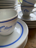 Porcelæn, 4 kaffekopper, Royal Copenhagen & Bavaria, Smukke hvide kaffekopper med blå kant. Fra Royal Copenhagen nr. 9601 og fra Bavaria designet af Jørgen Hallum. Tilhørende underkopper. Disse er fra Bavaria. Små variationer i design.