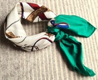 Tørklæde, vintage, str. 86 x 85 cm, grøn, hvid, guld, rød, blå, 100% silke, Næsten som ny, Pragtfulgt vintage-tørklæde i tyk silketwill, med håndrullede kanter. Kvalitet ligner Hermès.