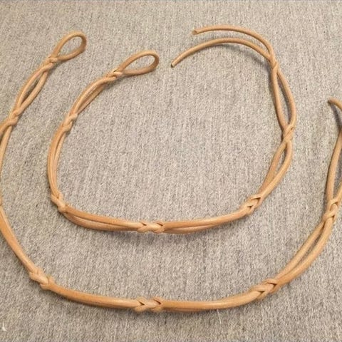 Læderstropperne er flettet i naturfarvet glat rundlæder. Utrolig god holdbarhed. Professionelt produceret i Danmark.