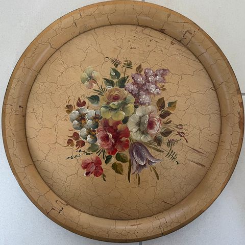 Træbakke med håndmalede blomster, Kan bruges til småkager eller til at sætte dekorationer på
