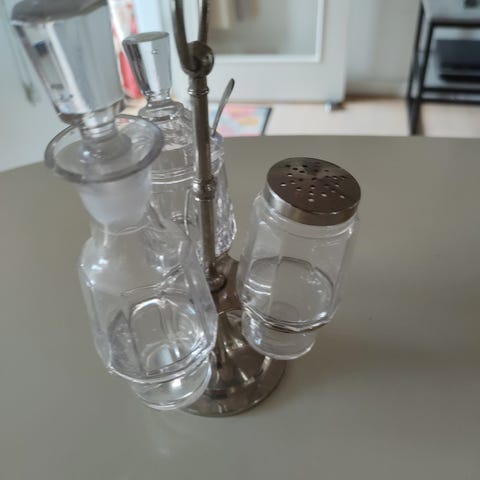 Plat de Menage, Sølvbelagt Plat de Menage fletkurv med hank til 4 items Ø 11,5 cm sælges 175,-. Fragten aftales individuelt!