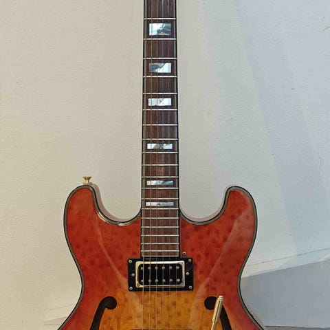 Halvakustisk, Samick CH-750, opgraderet med den ægte Gibson 57 humbucker "Gold" som er professionel påsat i neckposition ved gribebræt (jazz position), som man brugte dengang på de dyre guitarer i 1950èrnes eller Gibson 335 flagskibe!!..