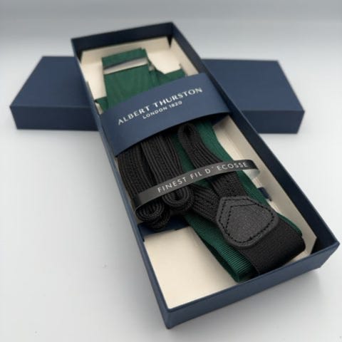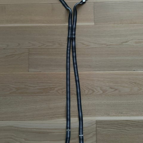 Stribet, silke seler med sølv spænder og læderspænde til buskeknapper. Højeste kvalitet!