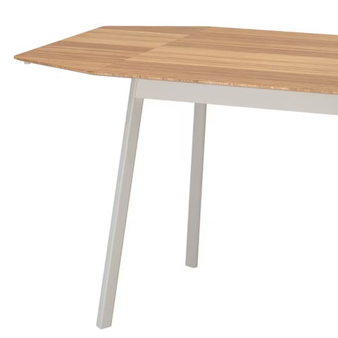 Hvis man kun slår den ene side ud, er bordet 106 cm langt, ellers er det 138 cm langt når det er helt udslået:)
