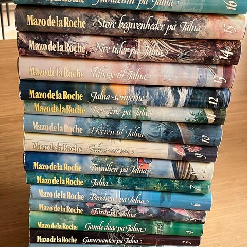 Jalna sagaen 1-16, Mazo de la Roche, genre: romantik, Hardback med smudsomslag i pæn stand.