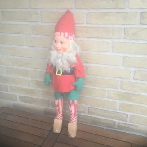 Stor gammel nisse, Stor gammel nisse i bemalet keramik. Nissen har et rigtigt hyggeligt udtryk i ansigtet. Nissen er håndmalet i de helt perfekte skønne, dybe nissefarver. Har en smuk patina! Dette er en nisse man bare bliver glad af at kigge på!