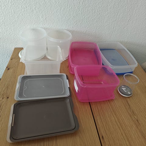 Plasticbøtter + kande, Plasticbøtter, en kande + 2 glas.