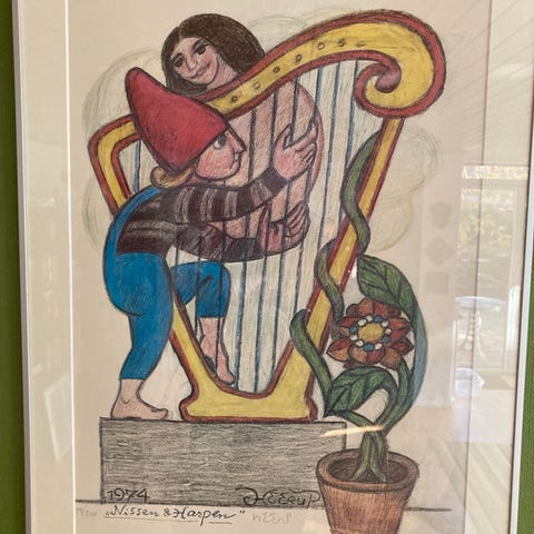 billedkunst, HENRY HEERUP, motiv: DE RIDENDE, b: 62 h: 35, dekoration af kampsax kollegiet i en svensk kvalutets ramme