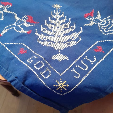 Håndbroderet dug eller brød serviet, Ca 29 x 29 cm