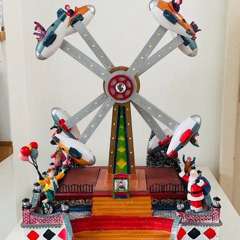 Mr Christmas Karrusel, Stor karrusel med vilde dyr og farvestrålende LED-lys i top. Der er mulighed for at styre såvel lys som melodier. Karrusellen kan spille 20 kendte melodier fra rundt om i verden og 20 julemelodier og kan derfor bruges som en smuk dekoration hele året. Adapter medfølger. Måler 41,9 cm i diameter og har en højde på 39,1 cm.