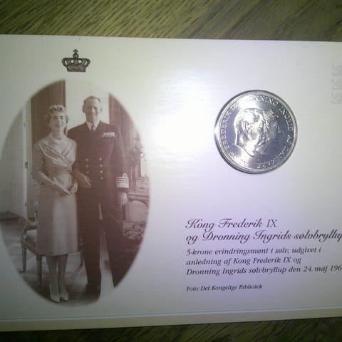 Danmark, mønter, 5 DKK, 1964, Bryllupsmønt udgivet i anledning af Prinsesse Anne-Maries bryllup med Kong Konstantin.