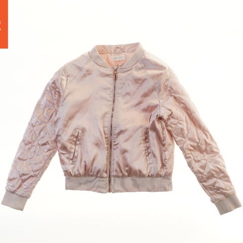 Bomber jakke har gennemgående lynlås, ribkant i Ærmer og nederst