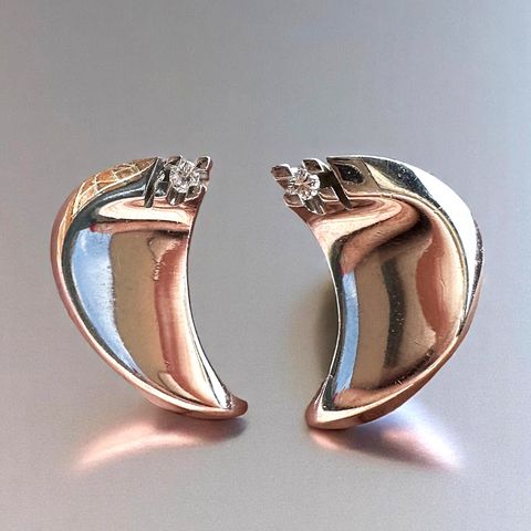 Øreringe, brillant, Kaj jørgensen, Kronprinsesse model med 2x 0,10 brillanter i 14 karat guld diamant bevis medfølger