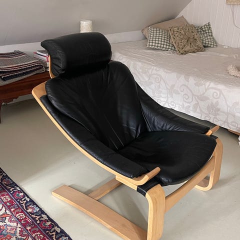 Jeg har ikke tal på de børn der er faldet i søvn på maven af mig i denne stol ! hemmeligheden er at den har lidt gyngefunktion.