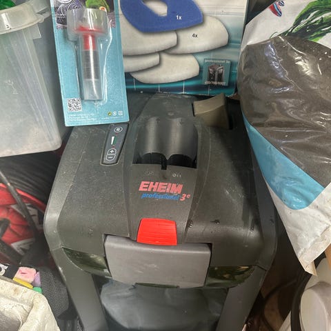 Pumpen kommer fra ny uden filtermateriale, så der er installeret nyt, originalt Eheim filtersæt.