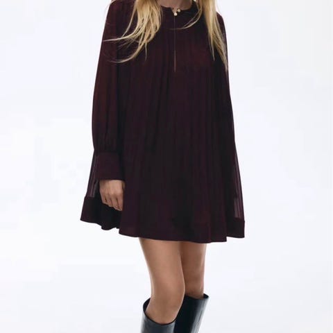 Fin dybrød kjole, i dejligt luftigt stof og med elastik i livet.