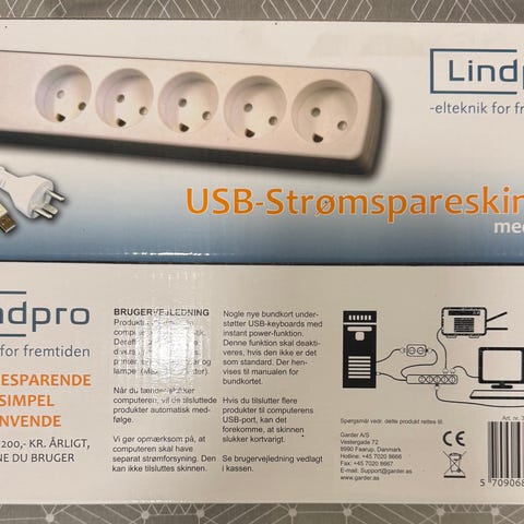 Stikkontaktdåse / usb stik, Neolume, Neolume stikkontaktdåse, som ny, med 5 stikpropper, 3 ben og 1 usb stik, 165 cm ledning med 3 bens stik